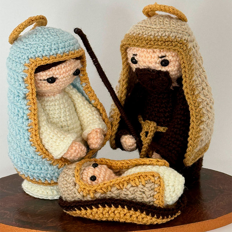 Incluye un pesebre artesanal* —tejido a mano con la técnica japonesa amigurumi— y un bono solidario que representa un mes de alimentación para uno de nuestros beneficiarios.
